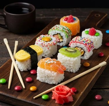 ✔️ Aprende paso a paso a preparar distintos tipos de Sushi Dulce: con arroz, crepe, bizcocho, masa de galleta y combinaciones, siguiendo recetas claras y detalladas.